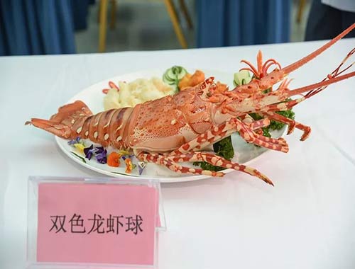 深圳會場鵬城技師學(xué)院師生制作雙色龍蝦球、紅燒光明乳鴿、脆皮炸仔雞、南澳海膽炒飯、香煎沙井金蠔、天鵝榴蓮酥、五色蝦餃等經(jīng)典粵菜粵點。